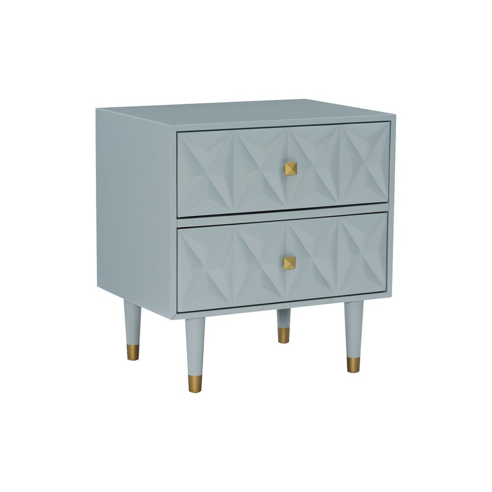 It's all about adding texture and depth to your decor when it comes to this elegant black nightstand. Displaying a geometric patterned front, it is accented with square gold hardware and round gold gold-dipped legs. The two deep drawers are apt for storing your books, accessories, stationery, etc. The black finish adds to the refreshing appeal to complement your decor style.
