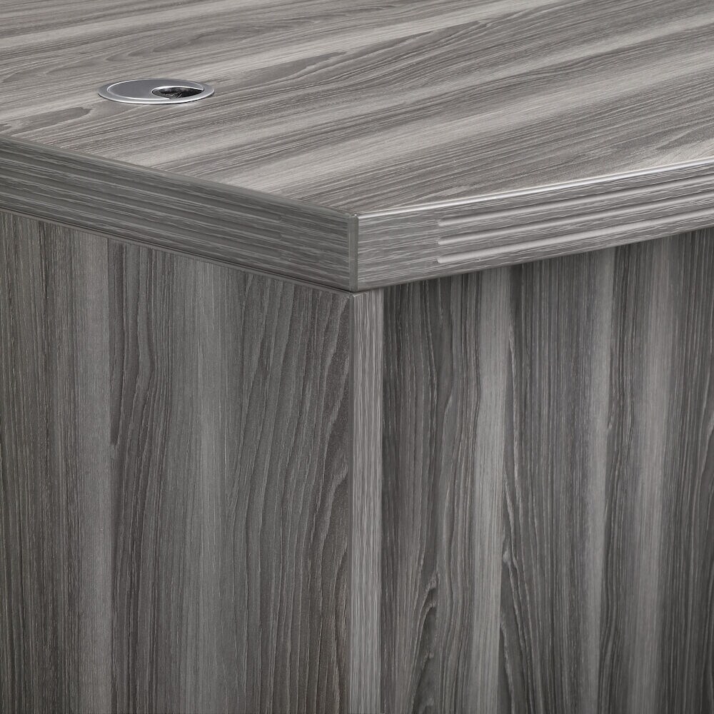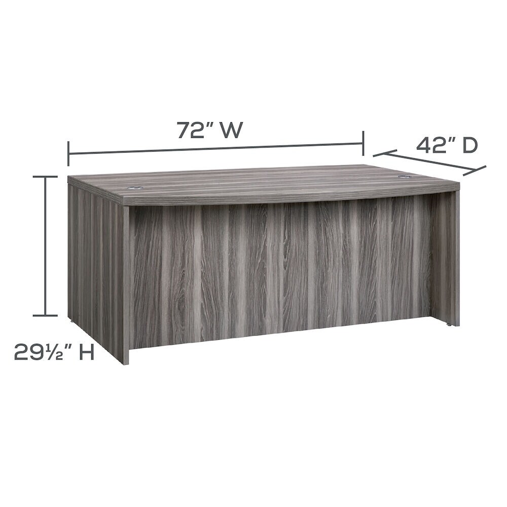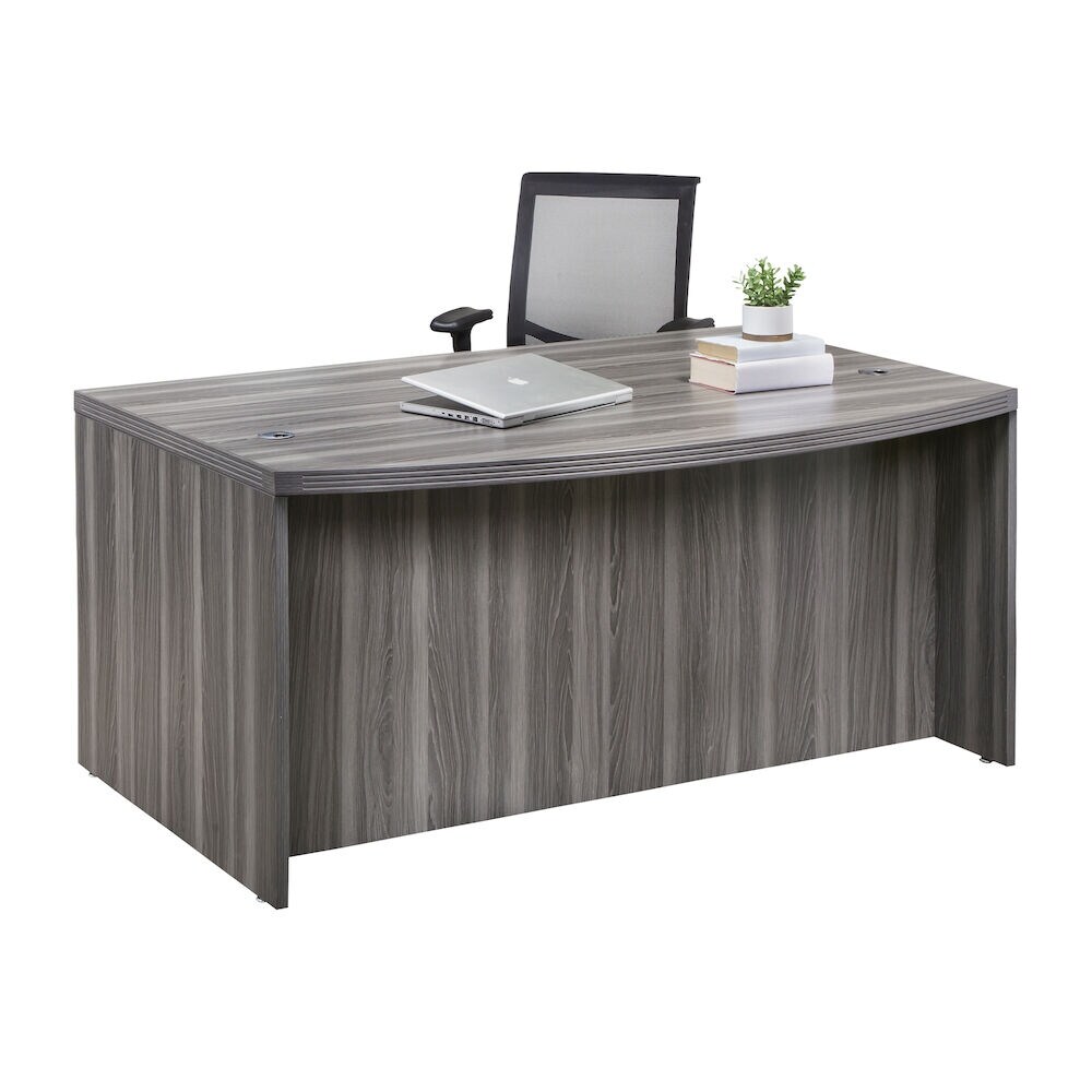 Work comfortably at this spacious bow-front desk. Built-in grommets help you keep cords and cables under control for a tidy look, and the thick top surface easily supports the weight of your computer.
