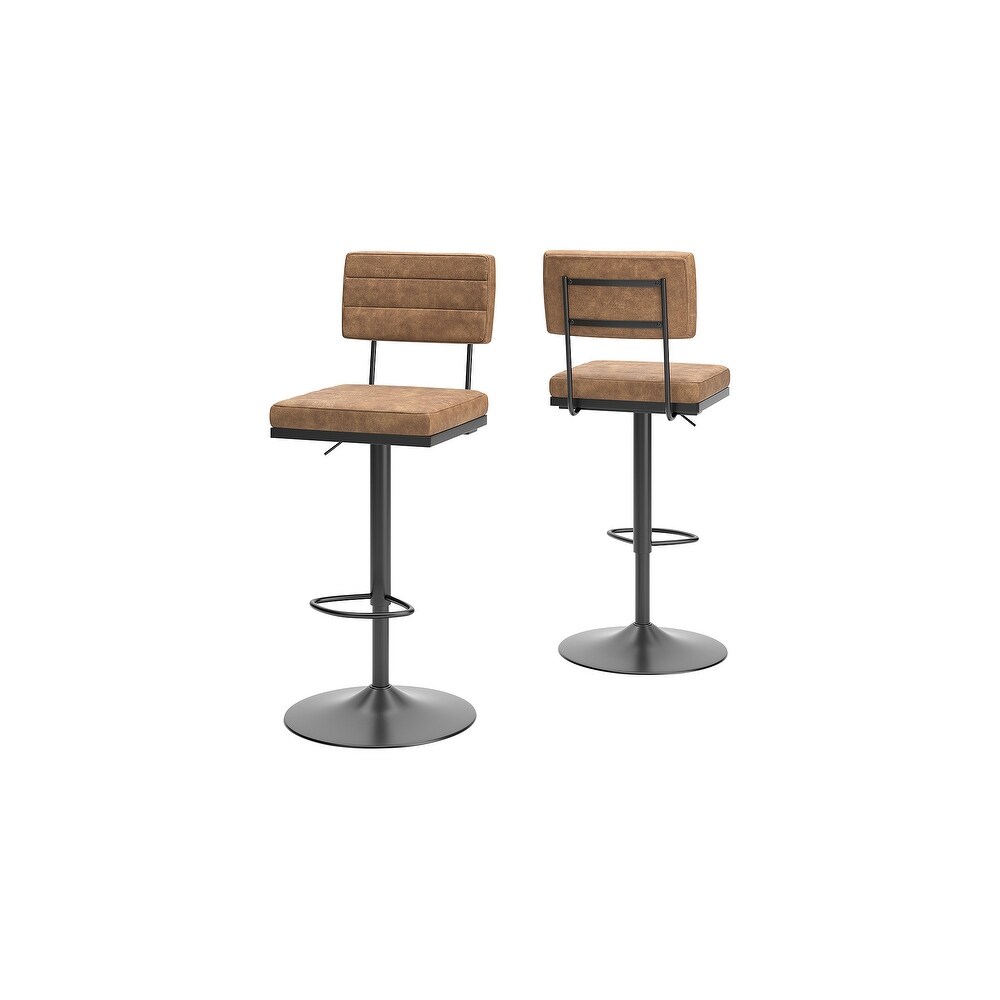 Have a seat in sleek style with this upholstered swivel bar stool. Contemporary with a casual vibe, it's dressed to impress with a metal frame and a cushioned seat and back wrapped in faux leather. Along with the bar stool's smooth-gliding swivel, a pedestal allows you to adjust its height to accommodate your space.