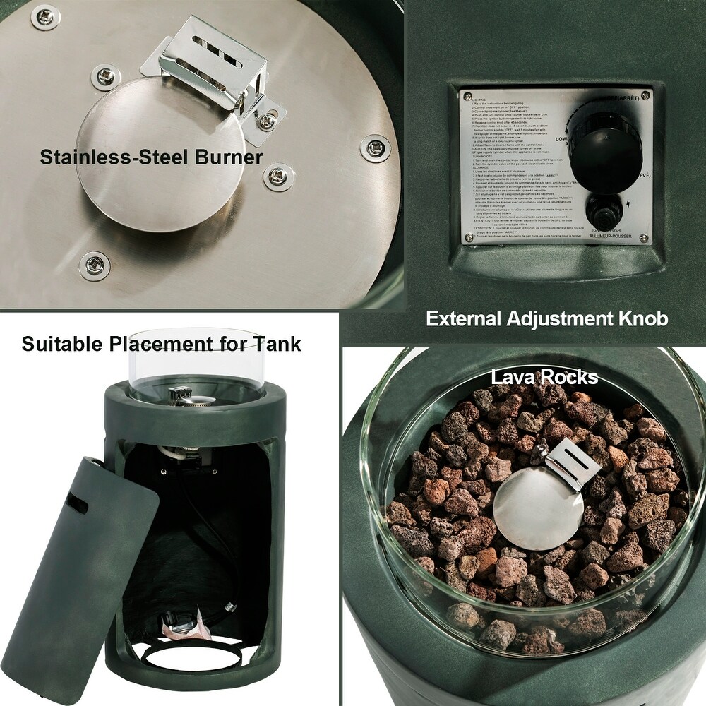 - Package includes: Main frame of fire table, free lava rocks (7 lbs.), rain cover, AAA battery, metal fixator, glass wind guard, instruction manual