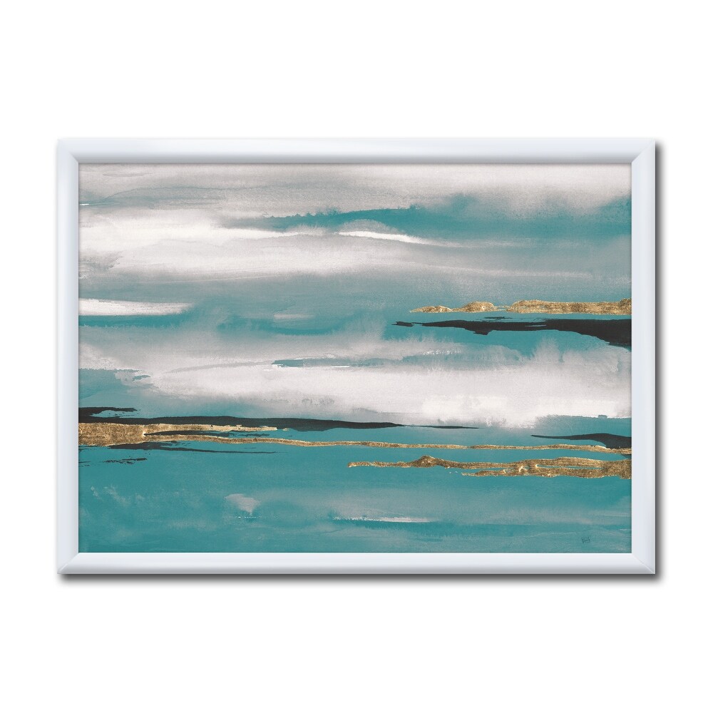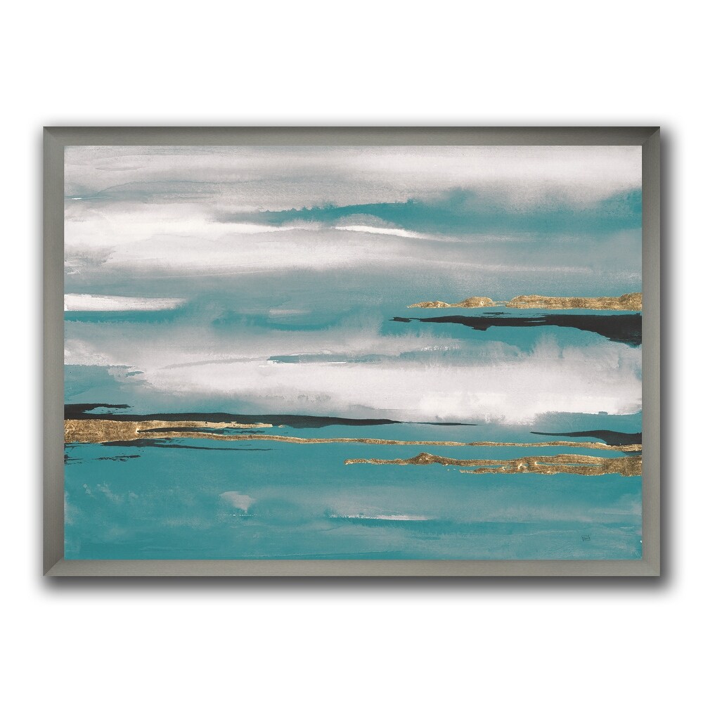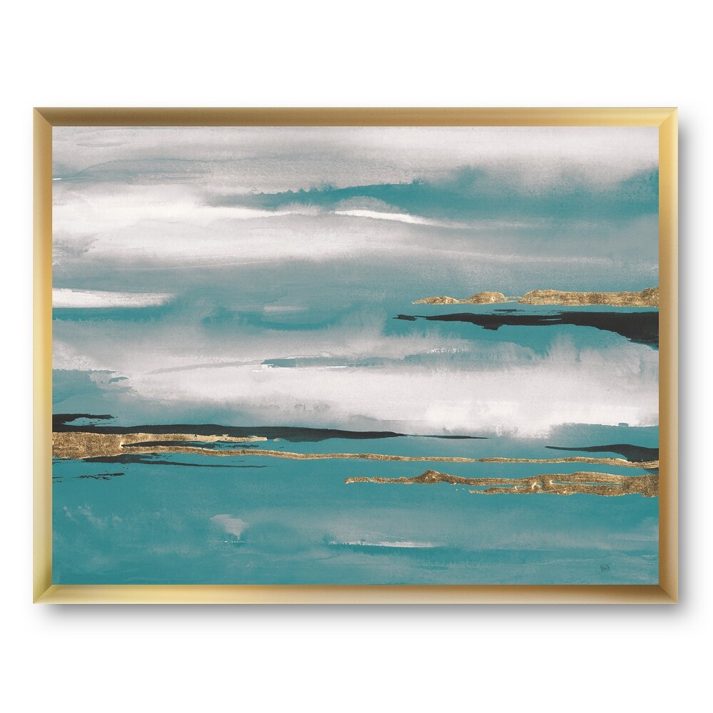 Match the contemporary allure of your sitting room with the abstract-style charm of this framed art print by Designart. Teal, grey, and earthy hues evoke the beauty of a hazy and misty landscape, offering a neutral-tone accent piece that matches seamlessly with modern decorative schemes. Surrounded with a thin-profile and elegant wood frame, this art piece presents an attractive design while providing an enduring glamour with the high-quality and fade-resistant inks. This fine giclee print arrives safe and ready to hang thanks to the corner protectors and hanging kit.