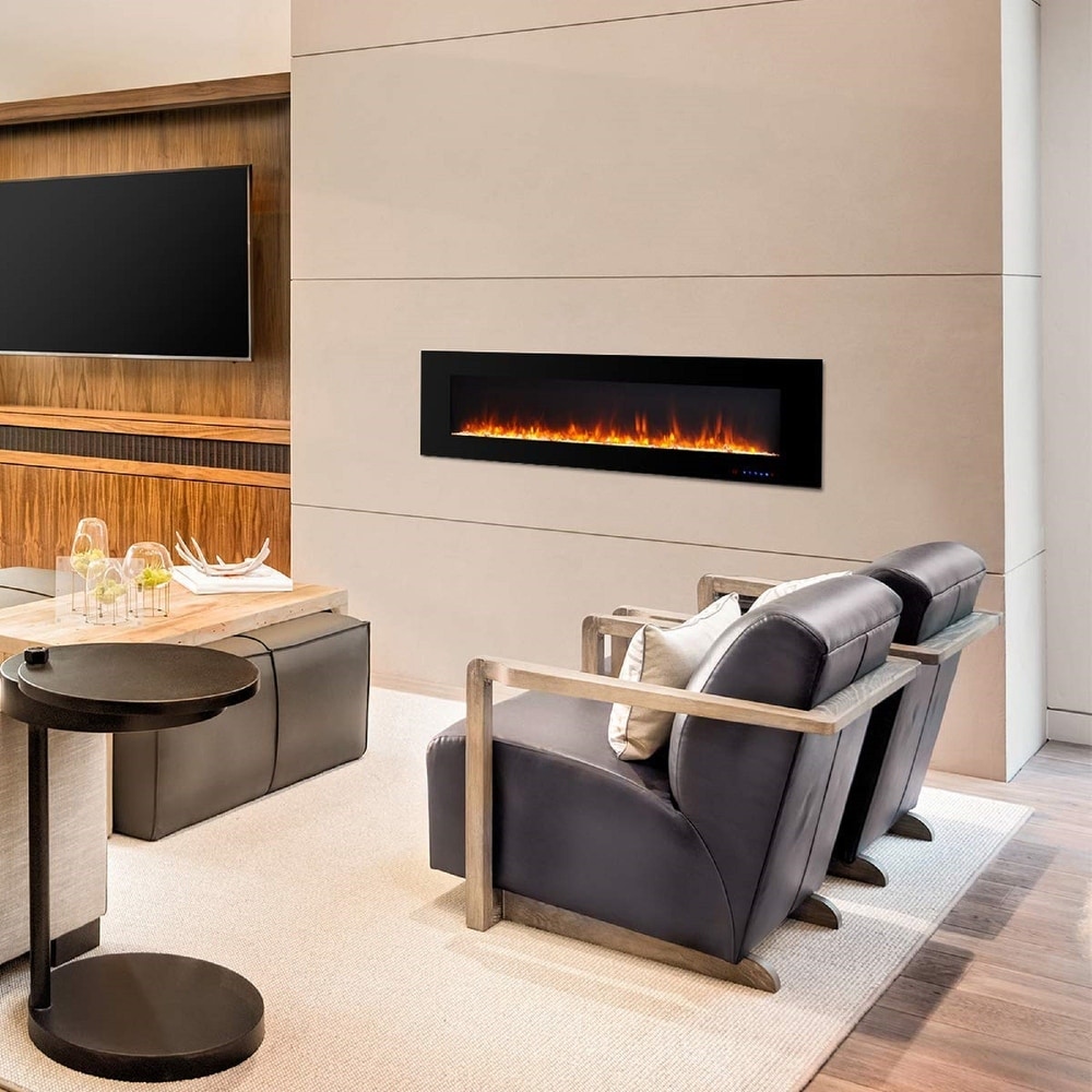 This wall mount electric fireplace is the perfect choice for those looking to create a bold, new statement piece in their home or business. This stunning linear fireplace features an elegant and slim body which offers the impressive flame effects. More flame color options give you the opportunity to create a look that speaks to your specific tastes, whether they be more traditional in nature or more modern. Adding yet another level of visual interest and intrigue, this fireplace features a separate LED lit fuel bed with 3 color options (blue, yellow, yellow & blue). Between the 3 flame, as well as flame speeds and flame brightness's, you'll be able to change your look as often as you want. This heater is a great way to take the chill out of your room, without needing to raise the temperature of your entire home (an oftentimes costly option). Alternatively, when additional warmth is not needed, simply turn off the heater to enjoy the spectacular flame effects year round. A multi-function remote control is included and operates the flame speed, color, brightness, heater and timer.