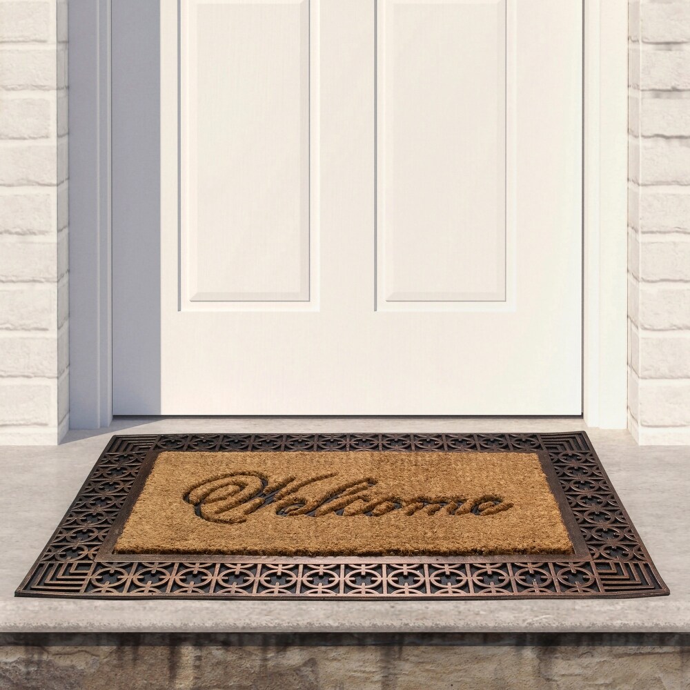 Adorn your doorways with this outdoor "Welcome" doormat while also protecting your floors and carpets from outside debris. It will provide a fashionable entry style while doing double-duty trapping in dirt and moisture. Made from durable materials coir brush mat fibers it will withstand your family and friend's foot traffic.