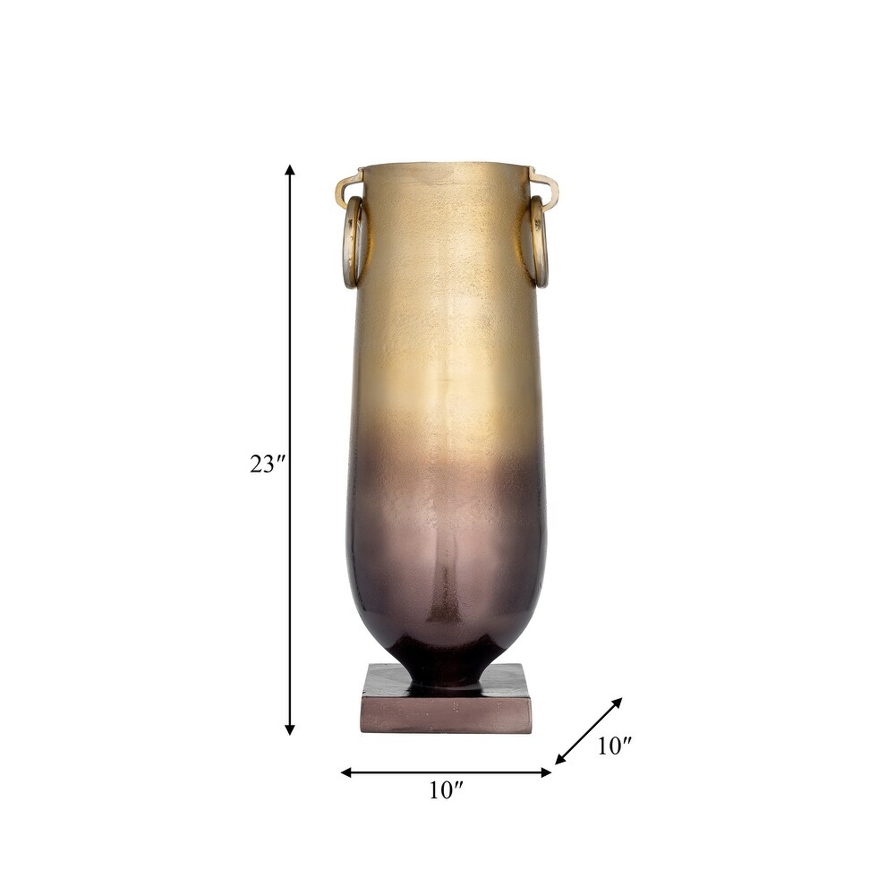 Add a touch of elegance and style to any room with the Sagebrook Home Metal Metallic Vase. This uniquely designed vase is made of durable aluminum and features a trendy ombre finish in bronze. With its contemporary design, this vase is sure to make a stunning statement in any space. Use it as a floral vase or as an accent piece to enhance your home decor. It also makes a thoughtful gift for flower or plant lovers. Whether it's for weddings, birthdays, or just because, this vase is the perfect addition to any occasion.