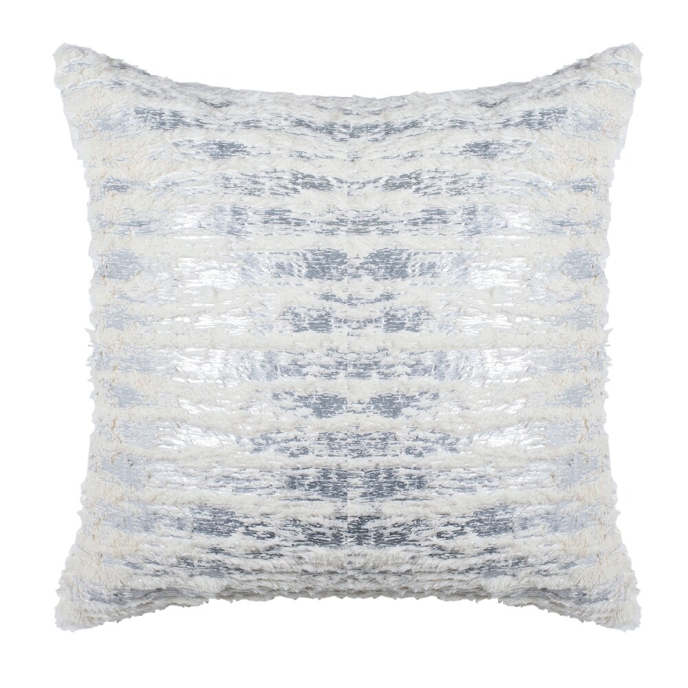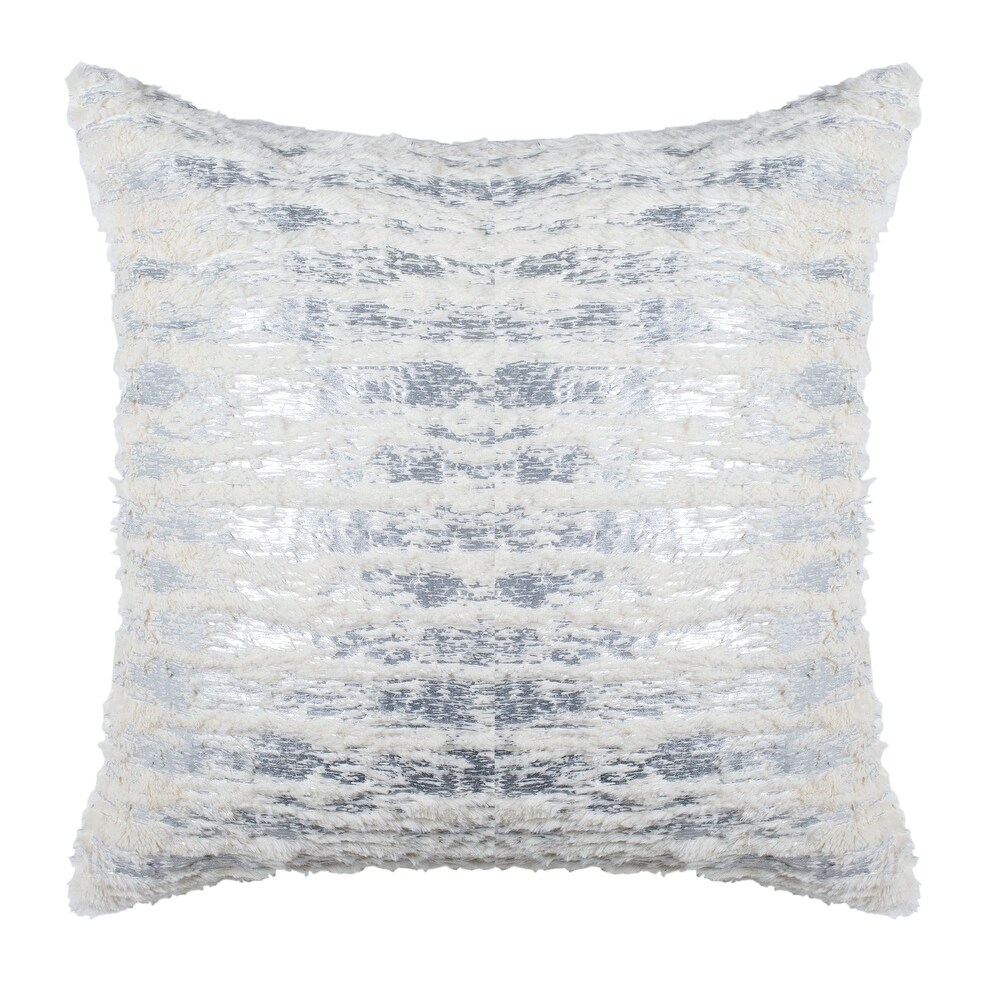 A collage of cool tonal colors and shimmering textures cover the lavish Lorelei Throw Pillow. Like the sparkle of starlight, this striking accent pillow brightens any space with its superb silver shine and sensational softness. Made with a helpful zipper so cleaning is a breeze.